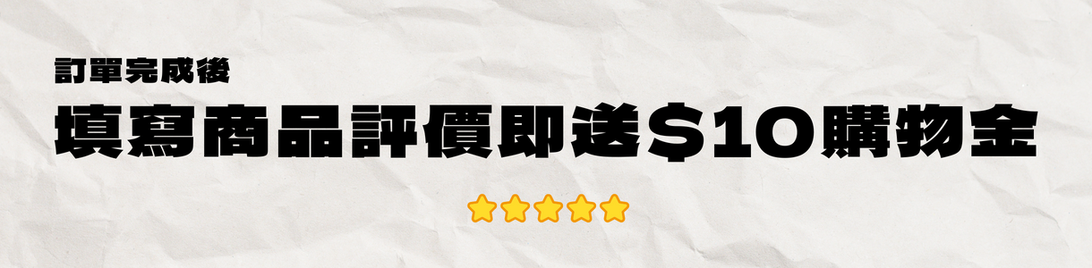 訂單完成後14天內評價,即贈$10無限期購物金當錢使!